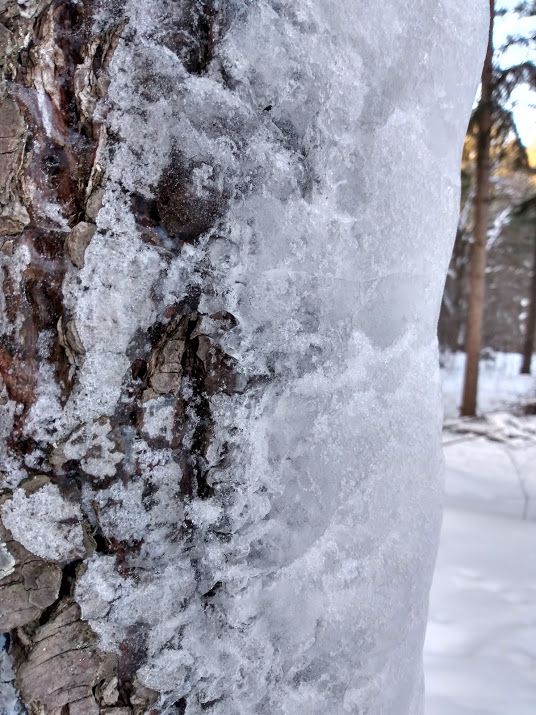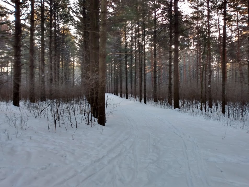anyway, it was about -4 F when i arrived for a ski this morning, with the usual blessings of early-morning skiing in sub-zero temperatures: eyelids freezing to one another, toes that go numb if you stop for more than a minute or two, biting cold on the skin during downhill runs. the kind of stuff that a certain kind of cross-country skier actually thinks is kind of fun. my only regret is that i had trimmed back my full beard a week ago; i would have had an amazing ice-beard by the end had i kept it until today. oh well.