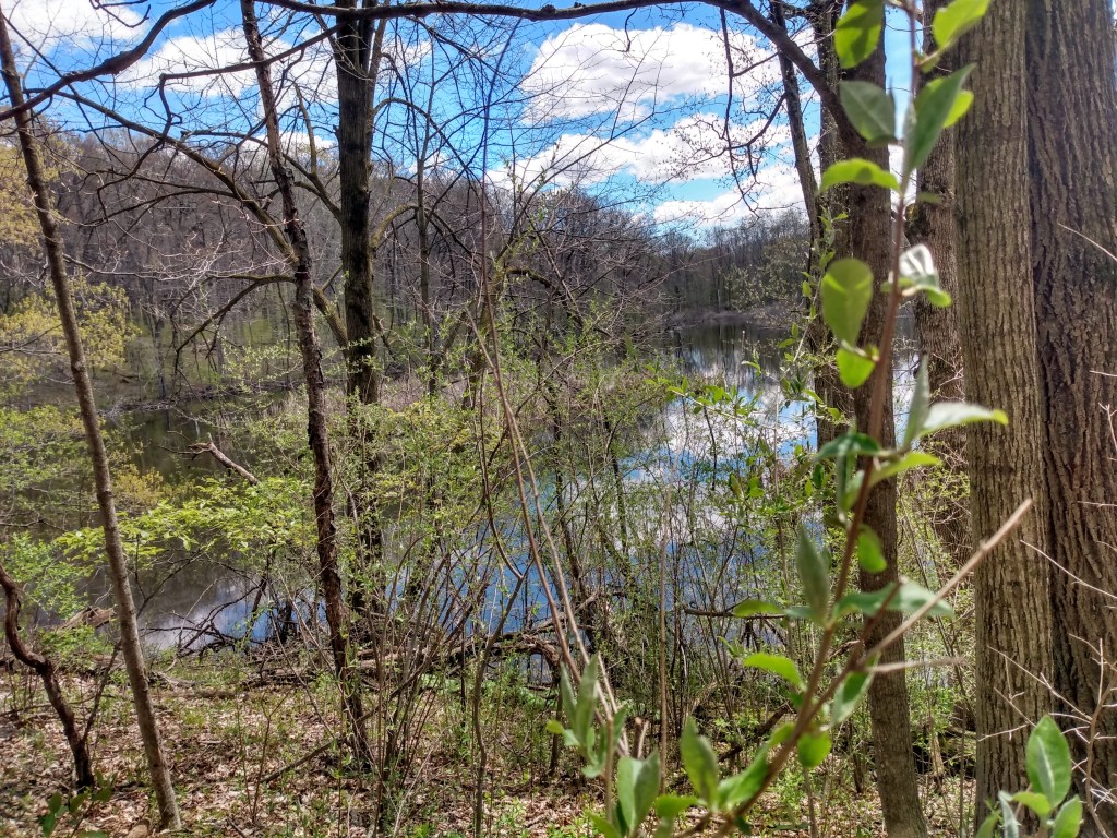 it’s a nice secluded spot, open, with lots of geese at the moment who are not terribly amenable to visitors. the trees are shifting from oak-dominated to maple and beech. a lovely display of cloud and sky over the small unnamed lake.