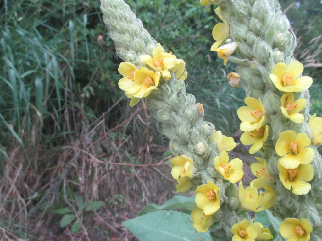 we had a good walk—lots of spiderwort, mullein, grasses, cattails, white campion, water, redwing blackbirds, sky. also, crushed baraboo quartzite underfoot as the railroad bed.