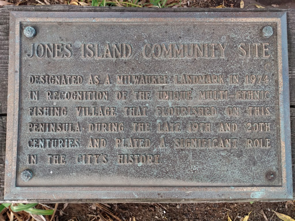 spots here and there are delightful respites though. kaszube’s park being one, it’s a memorial park that calls back to public memory the jones island fishing community (here’s the obligatory mention of the fact that it’s actually on a peninsula now). the kashubian population that inhabited the island in a fishing village came from pomerania and were finally forced out between the 1920-40s for greater industrial exploitation of jones island. today it’s a site of salt processing and storage, waste treatment, and lots of concrete and metal.