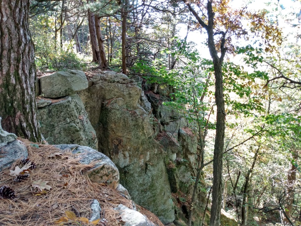 gibraltar rock is a flat-topped butte made of platteville-galena dolomite and st. peter sandstone. it’s an isolated part of the magnesian escarpment, one of three north-south running escarpments in wisconsin. sandy soil, a prairie on the way up, red oaks and lindens, red cedars up at the top. beautiful dolomite, scalloped and lichenized abounding.