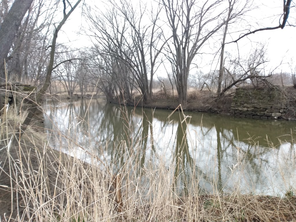 the alterations to the land and water (clearly going way back) were interesting, there’s an old defunct bridge’s stone foundations left looming over the river, and some ducks i couldn’t get a good look at kept flying further upstream as i tried to spy them out. snow flitting down.