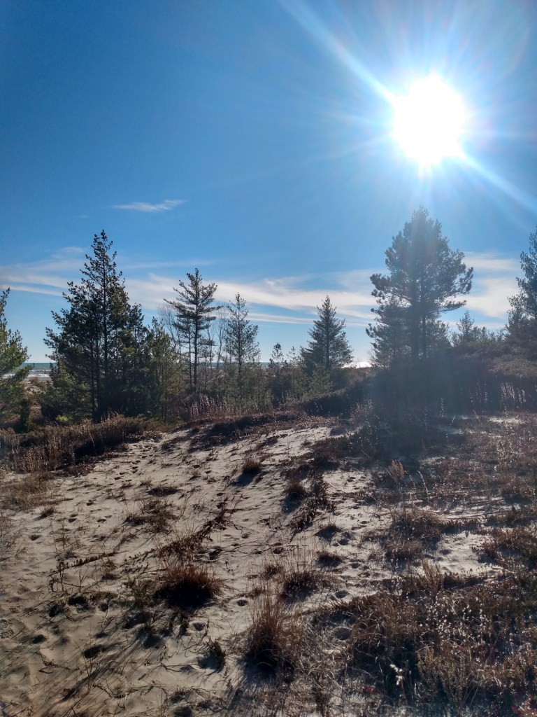 a gem. moonlight bay bedrock beach is a dolomite beach that is sometimes covered by water and sometimes not. we had a fabulous time walking along the shore, in and out of the water, onto dolomite boulders looming out of the water, rock hopping, etc. an incredible habitat, very unique.