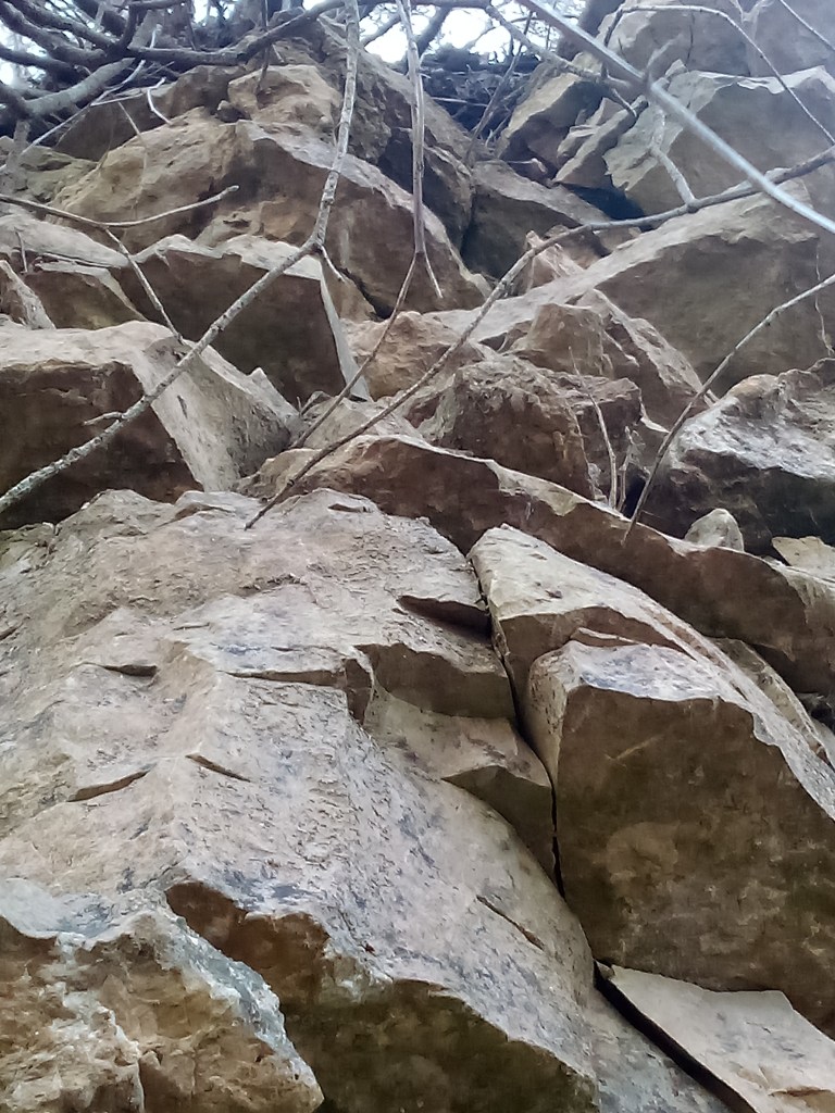 if you made it this far: across the southern boundary highway, presumably blasting took place to expose the sandstone bedrock below this area. lots of blocky texture!